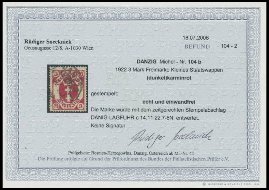 | Prüfer: | Soecknick, Rüdiger (BPP (Bund Philatelistischer Prüfer)) |