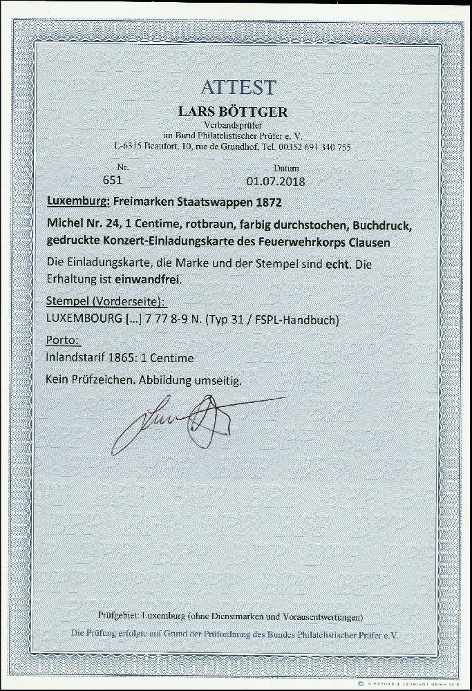 | Prüfer: | Böttger, Lars (BPP (Bund Philatelistischer Prüfer)) |