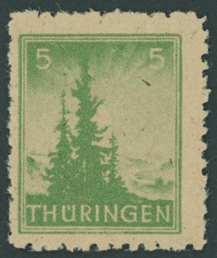 | Zusatzinformationen und Suchstichworte: | nordphila 491. Briefmarkenfernauktion 5. Juni 2023 Los 2680 SBZ Thüringen 1945, 5 Pf. dunkelsmaragdgrün, Spargummierung, dickes Papier, fallende Papierstreifung, postfrisch, Pracht, RRR!, Fotoattest Schulz: "5 Pf.-Marken in dieser Papiersorte zählen zu den großen SBZ-Seltenheiten.", Mi. (3200.-) Ausruf 1.200,00 EUR |