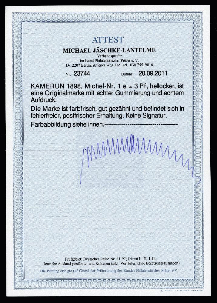 | Prüfer: | Jäschke-Lantelme, Michael (BPP (Bund Philatelistischer Prüfer)) |