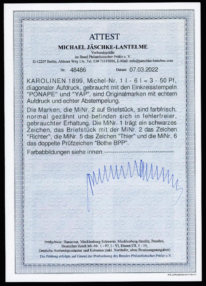 | Prüfgebiet: | Deutsche Kolonien Karolinen |
