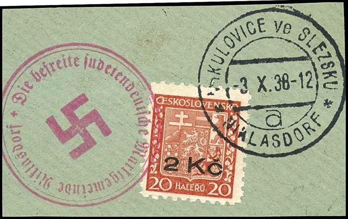 | Zusatzinformationen und Suchstichworte: | Dr. Reinhard Fischer 192. Auktion 19. - 20. Mai 2023 Los 1690 Sudetenland Niklasdorf 2 Kc. auf 20 Heller Freimarke, entwertet "Niklasdorf 3. X.38" sowie rosanes Dienstsiegel der Marktgemeinde Niklasdorf auf Briefstück, tadellose Erhaltung, Auflage nur 350 Exemplare, Expertise Robert Brunel VP (2023): "Die Erhaltung ist einwandfrei.", Mi. 400.- nicht sehr realistisch, Zuschlag 170. Auktion = 270 EUR, 158. Auktion (bei damals 300 Mi. = 250 EUR) Zuschlag 250,00 EUR |
