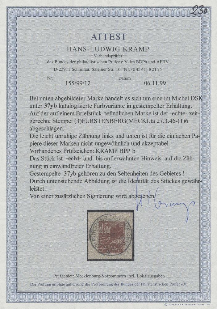 | Prüfer: | Kramp, Hans-Ludwig (BPP (Bund Philatelistischer Prüfer)) |