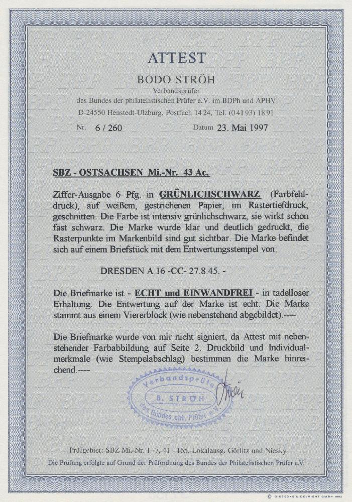 | Prüfgebiet: | Alliierte Besetzung SBZ Ost-Sachsen |