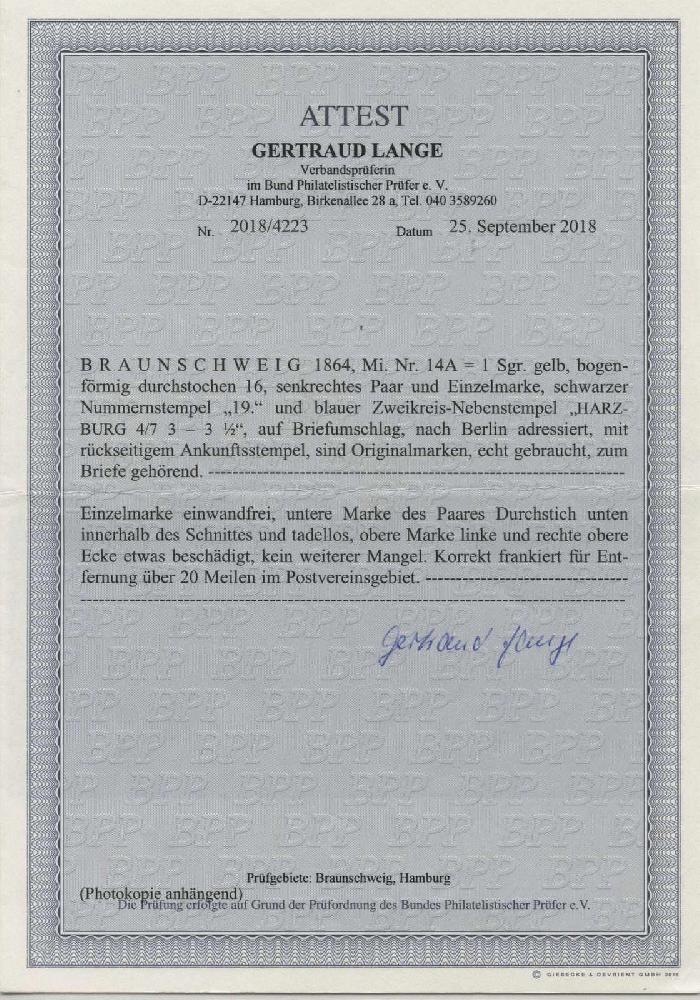 | Prüfer: | Lange, Gertraud (BPP (Bund Philatelistischer Prüfer)) |