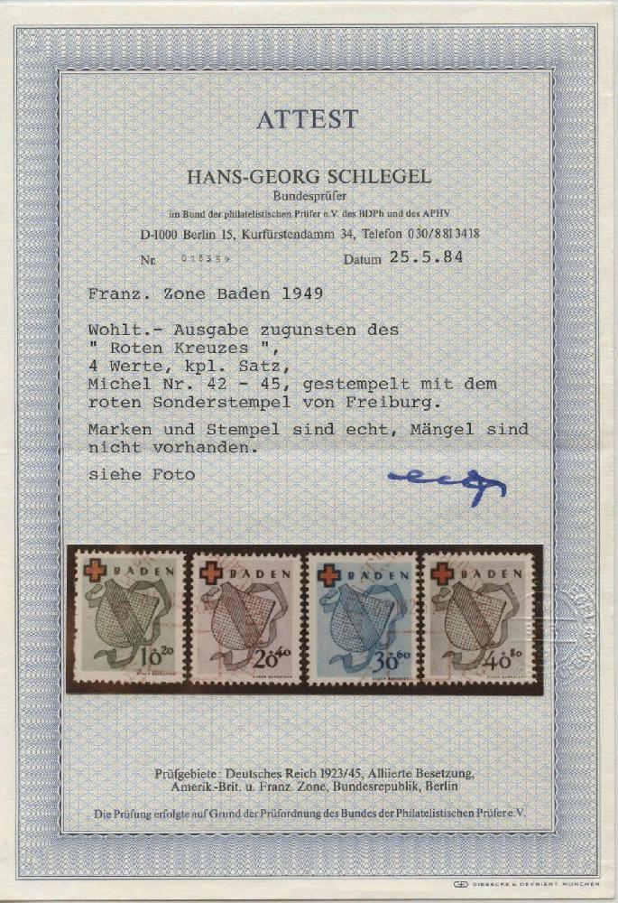 | Zusatzinformationen und Suchstichworte: | Tiergarten 11. Briefmarken und Münzen Auktion 22. Mai 2023 Los 546 Französische Zone Baden 1949, Rotes Kreuz, Kabinettsatz mit rotem Sonderstempel von Freiburg Zuschlag 70,00 EUR |