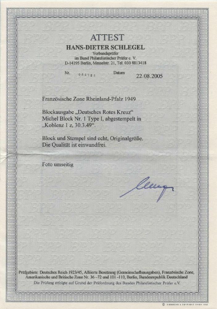 | Prüfer: | Schlegel, Hans-Dieter (BPP (Bund Philatelistischer Prüfer)) |
