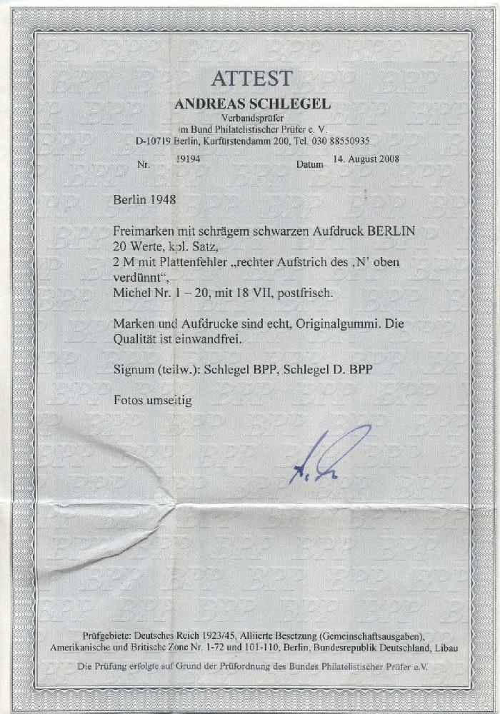 | Prüfer: | Schlegel, Andreas (BPP (Bund Philatelistischer Prüfer)) |