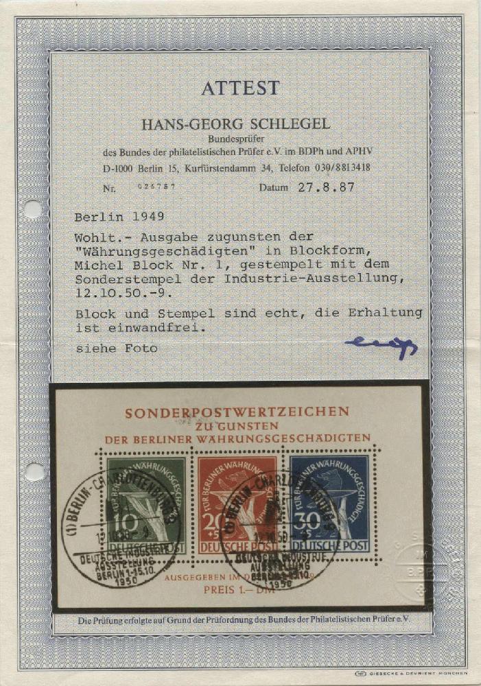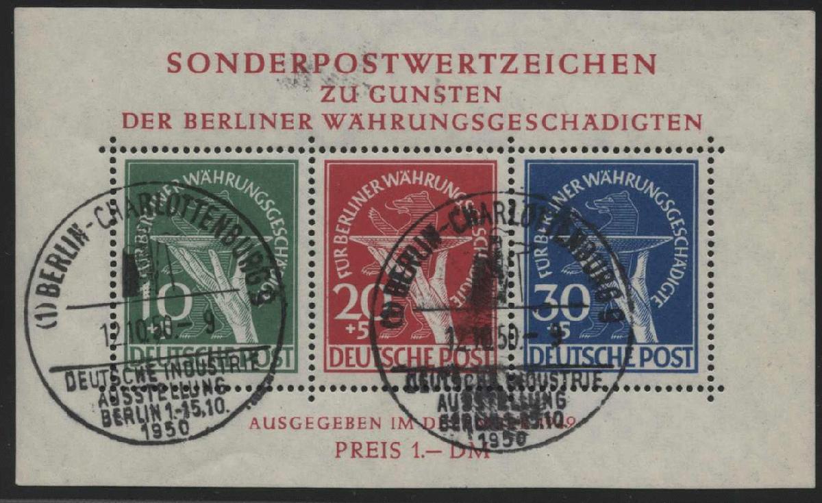 | Zusatzinformationen und Suchstichworte: | Tiergarten 11. Briefmarken und Münzen Auktion 22. Mai 2023 Los 607 Berlin 1949, Währungsgeschädigten - Block mit Sonderstempel der " Industrie-Ausstellung 12.10.50 ", einwandfrei erhalten Zuschlag 400,00 EUR |
