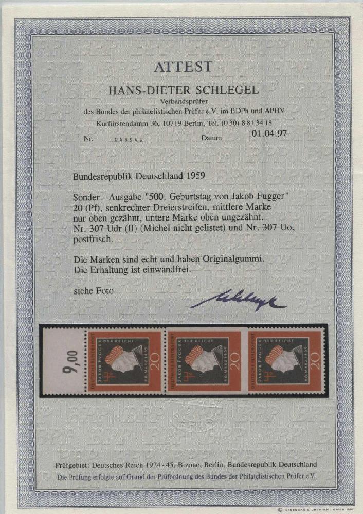 | Prüfer: | Schlegel, Hans-Dieter (BPP (Bund Philatelistischer Prüfer)) |