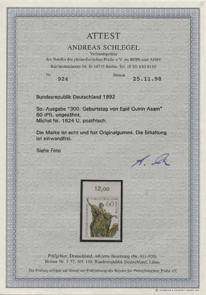 | Prüfer: | Schlegel, Andreas (BPP (Bund Philatelistischer Prüfer)) |