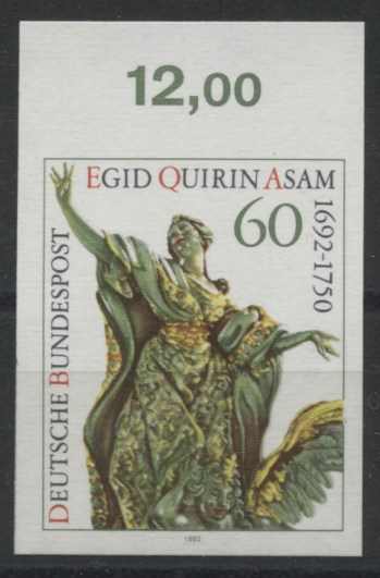 | Zusatzinformationen und Suchstichworte: | Tiergarten 11. Briefmarken und Münzen Auktion 22. Mai 2023 Los 671 Bundesrepublik Deutschland 1992, Quirin Asam ungezähnt, Kabinett-Oberrandstück Ausruf 10,00 EUR |