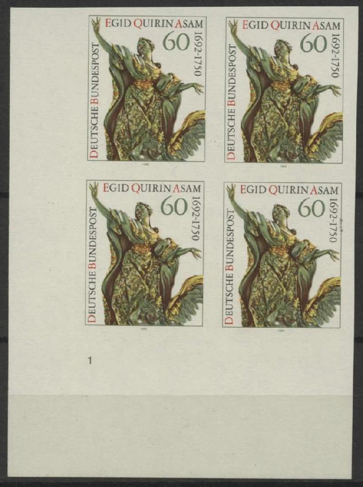 | Zusatzinformationen und Suchstichworte: | Tiergarten 11. Briefmarken und Münzen Auktion 22. Mai 2023 Los 672 Bundesrepublik Deutschland 1992, Quirin Asam ungezähnter Eckrand-Viererblock unten links Ausruf 50,00 EUR |