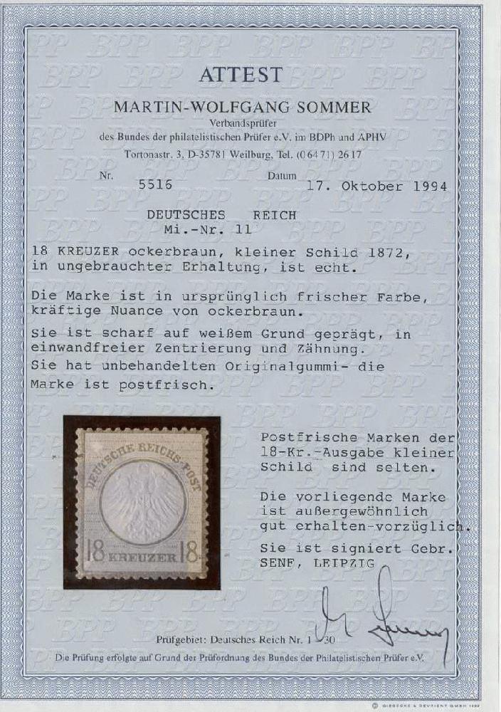 | Zusatzinformationen und Suchstichworte: | 32. Schlegel Auktionshaus Auktion 15. - 19. Mai 2023 Los 23 Deutsches Reich, 1872 Kleiner Brustschild 1872, 18 Kr. kleiner Schild dunkelockerbraun, postfrisch, sehr gut geprägt, einwandfrei Zuschlag 1.350,00 EUR |