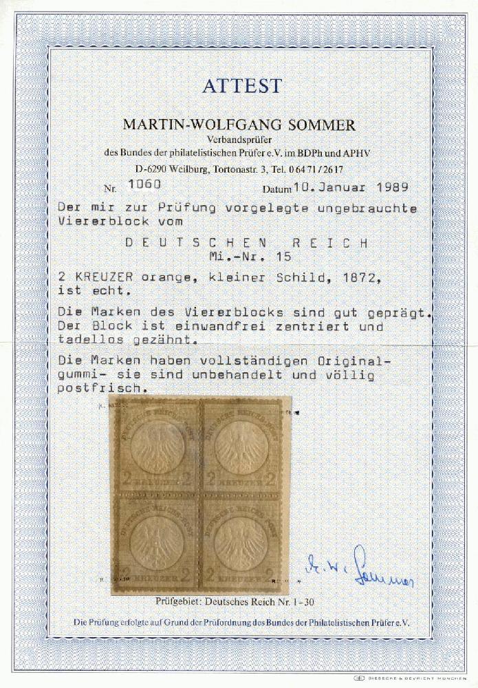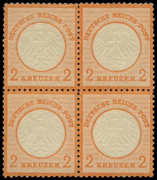 | Zusatzinformationen und Suchstichworte: | 32. Schlegel Auktionshaus Auktion 15. - 19. Mai 2023 Los 5275 Deutsches Reich, 1872 Kleiner Brustschild 1872, 2 Kr. kleiner Schild orange, postfrischer Viererblock, oben etwas angetrennt, ungefaltet und unsigniert in ansonsten einwandfreier Qualität Ausruf 200,00 EUR |