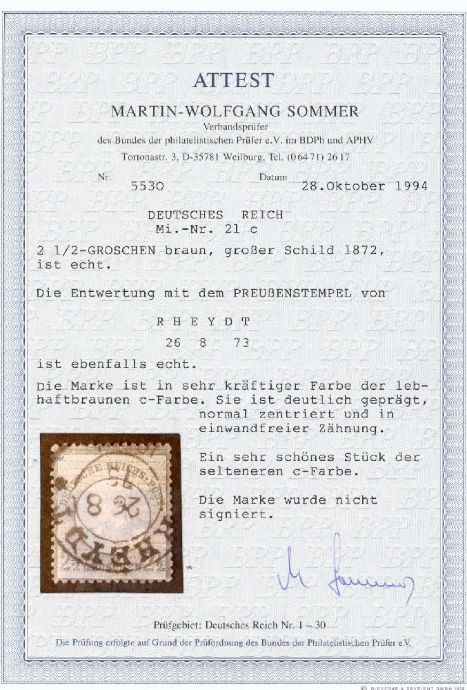 | Prüfgebiet: | Deutsches Reich 1871 - 1918 (Mi-Nr. 1 - 106) |