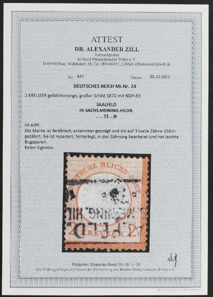 | Prüfer: | Zill, Alexander (BPP (Bund Philatelistischer Prüfer)) |