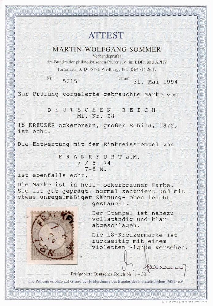 | Prüfgebiet: | Deutsches Reich 1871 - 1918 (Mi-Nr. 1 - 106) |