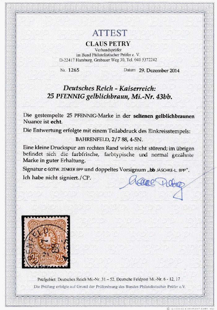 | Prüfer: | Petry, Claus (BPP (Bund Philatelistischer Prüfer)) |