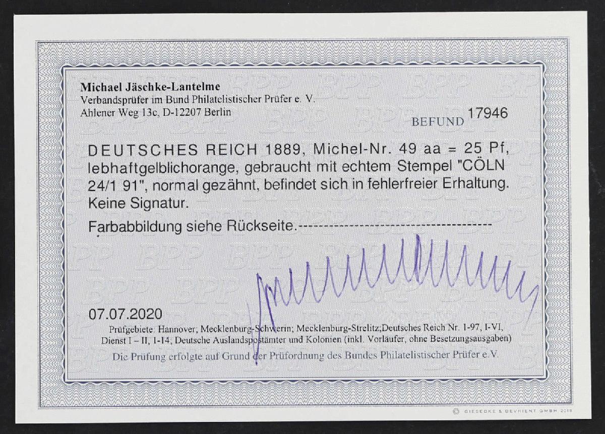 | Prüfgebiet: | Deutsches Reich 1871 - 1918 (Mi-Nr. 1 - 106) |
