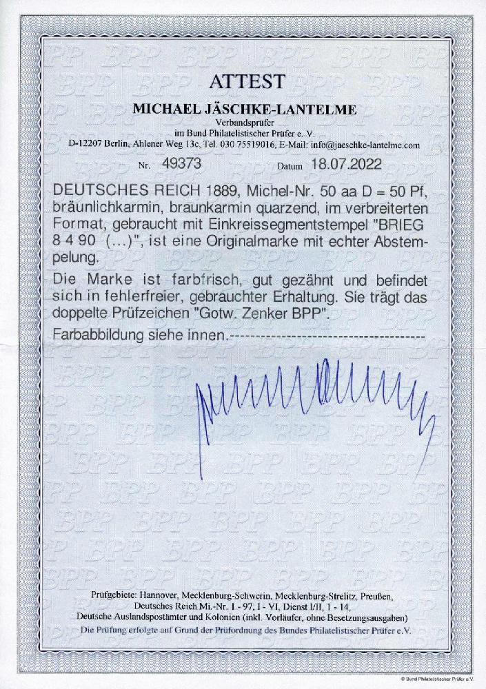| Prüfgebiet: | Deutsches Reich 1871 - 1918 (Mi-Nr. 1 - 106) |