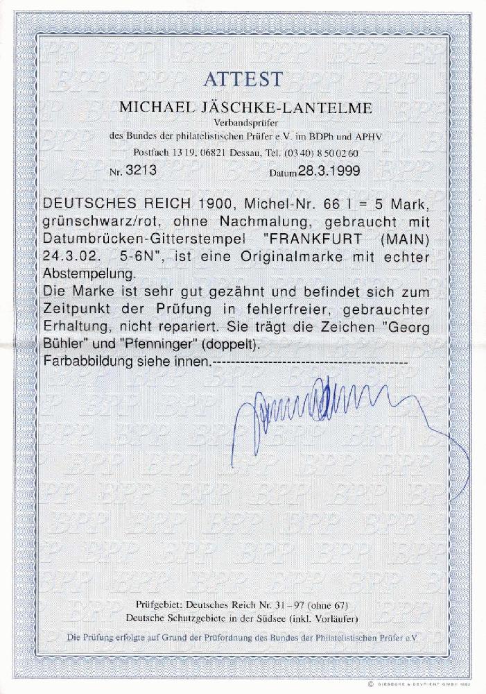 | Prüfgebiet: | Deutsches Reich 1871 - 1918 (Mi-Nr. 1 - 106) |