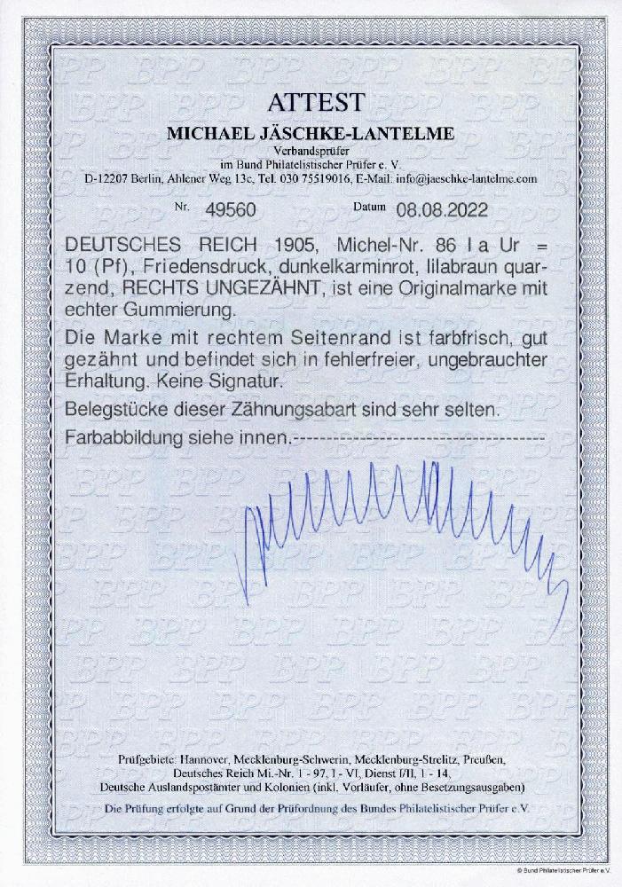 | Prüfgebiet: | Deutsches Reich 1871 - 1918 (Mi-Nr. 1 - 106) |