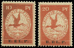 | Zusatzinformationen und Suchstichworte: | 32. Schlegel Auktionshaus Auktion 15. - 19. Mai 2023 Los 5435 Deutsches Reich 1912, 10 und 20 Pfg. E.E.L.P., beide Werte postfrisch, die 10 Pfg. etwas verfärbt und herstellungsbedingte Papierfalte, die 20 Pfg. einwandfrei Ausruf 350,00 EUR |