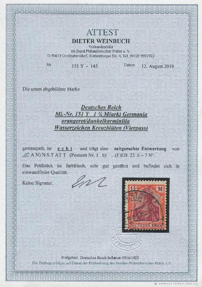 | Prüfgebiet: | Deutsches Reich 1919 - 1923 (Mi-Nr. 107 - 343) |