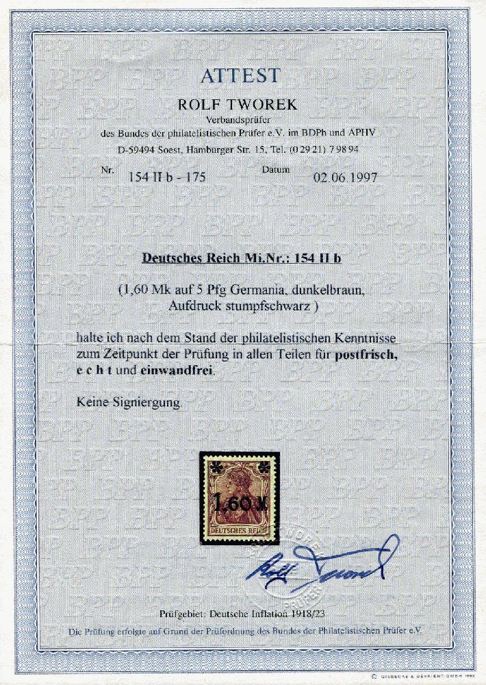 | Prüfer: | Tworek, Rolf (BPP (Bund Philatelistischer Prüfer)) |