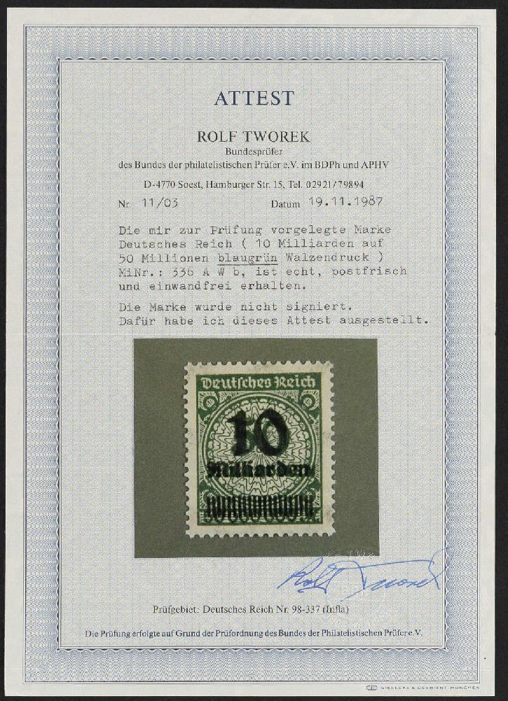 | Prüfgebiet: | Deutsches Reich 1919 - 1923 (Mi-Nr. 107 - 343) |