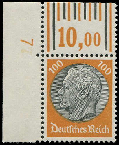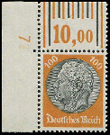 | Zusatzinformationen und Suchstichworte: | 32. Schlegel Auktionshaus Auktion 15. - 19. Mai 2023 Los 5697 Deutsches Reich, 1933/45 Drittes Reich 1933, 100 Pfg. Hindenburg Medaillon, postfrisches Exemplar aus der oberen linken Walzendruck-Bogenecke mit Druckerzeichen "7", ungefaltet und unsigniert in einwandfreier Qualität Ausruf 300,00 EUR |