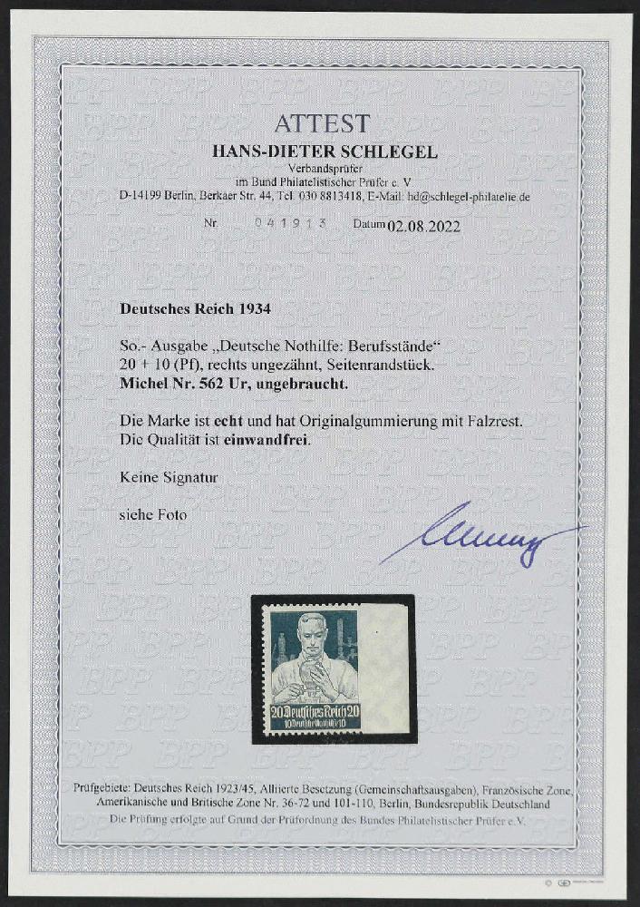 | Zusatzinformationen und Suchstichworte: | 32. Schlegel Auktionshaus Auktion 15. - 19. Mai 2023 Los 5776 Deutsches Reich, 1933/45 Drittes Reich 1934, 20+10 Pfg. Nothilfe: Forscher, rechts ungezähnt, ungebrauchtes Exemplar vom rechten Bogenrand, einwandfrei, sehr selten Ausruf 800,00 EUR |
