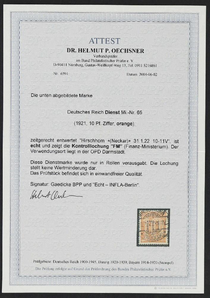 | Zusatzinformationen und Suchstichworte: | 32. Schlegel Auktionshaus Auktion 15. - 19. Mai 2023 Los 5876 Deutsches Reich 1921, 10 Pfg. Dienstmarke orange, mit halbmatlicher Lochung "FM" (Finanzministerium), gestempelt, einwandfrei, eine nicht häufige Lochung Zuschlag 450,00 EUR |