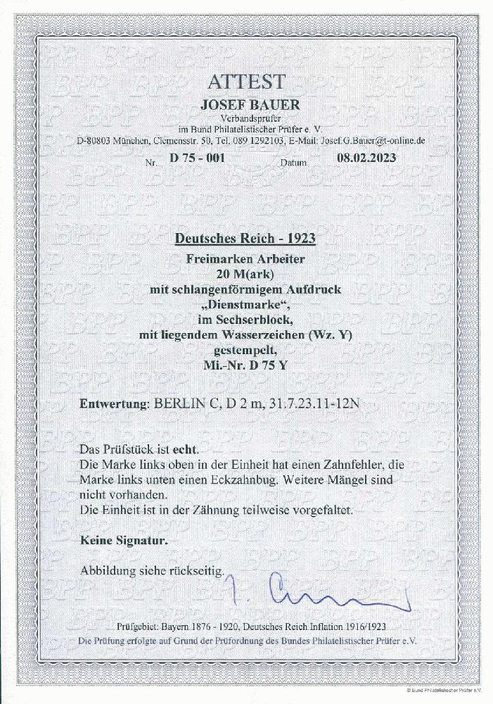 | Prüfer: | Bauer, Josef (BPP (Bund Philatelistischer Prüfer)) |