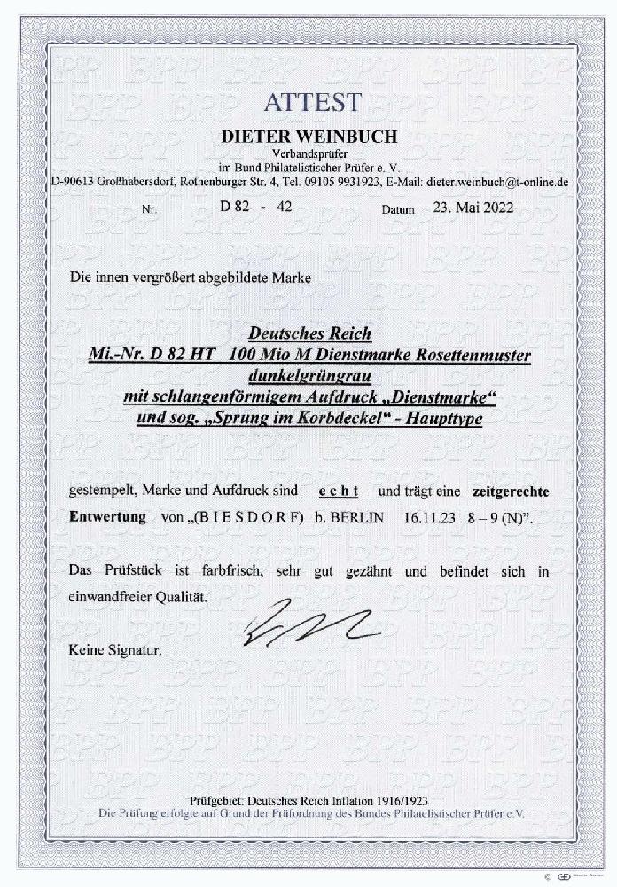 | Prüfer: | Weinbuch, Dieter (BPP (Bund Philatelistischer Prüfer)) |
