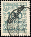 | Zusatzinformationen und Suchstichworte: | 32. Schlegel Auktionshaus Auktion 15. - 19. Mai 2023 Los 5882 Deutsches Reich 1923, 100 Mio M. Schlangenaufdruck mit dem Plattenfehler "Sprung in der Rosette" gestempelt, einwandfrei Ausruf 220,00 EUR |