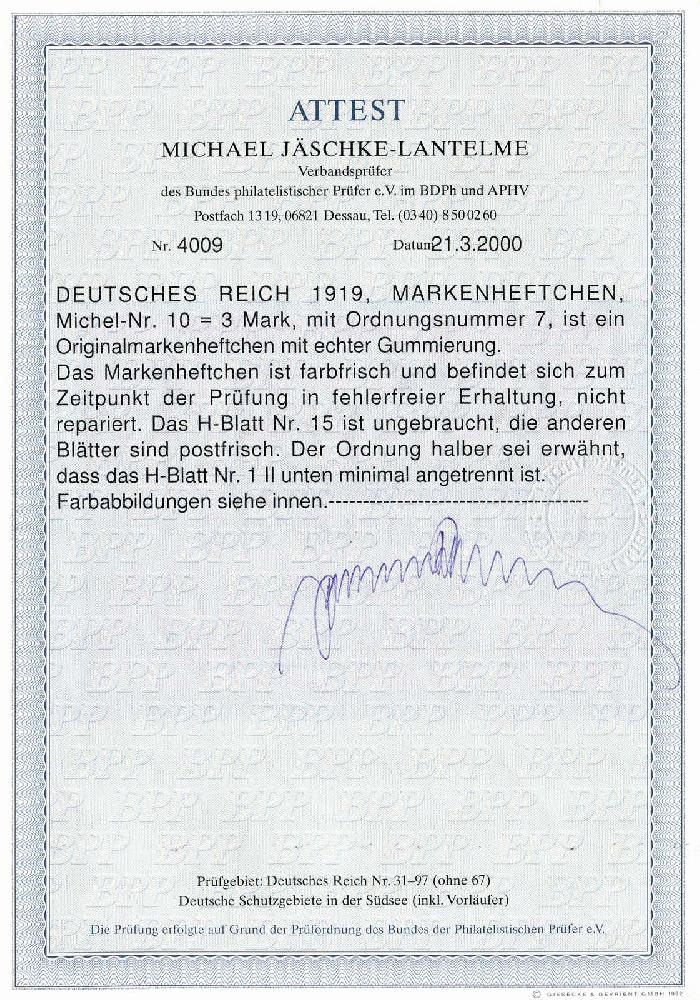 | Prüfgebiet: | Deutsches Reich Markenheftchen u. Zusammendrucke 1900 - 1945 |