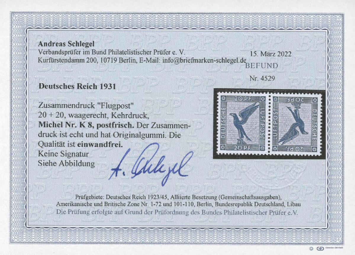 | Prüfer: | Schlegel, Andreas (BPP (Bund Philatelistischer Prüfer)) |