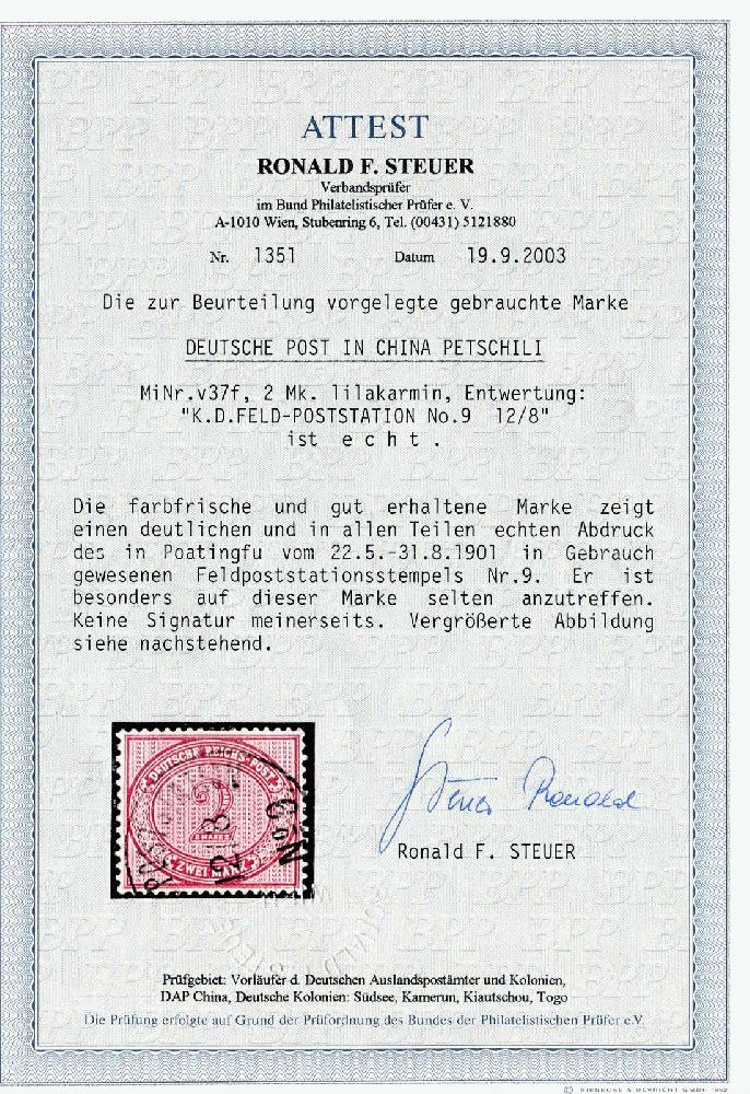 | Prüfgebiet: | Deutsche Auslandspostämter China Petschili-Ausgaben |