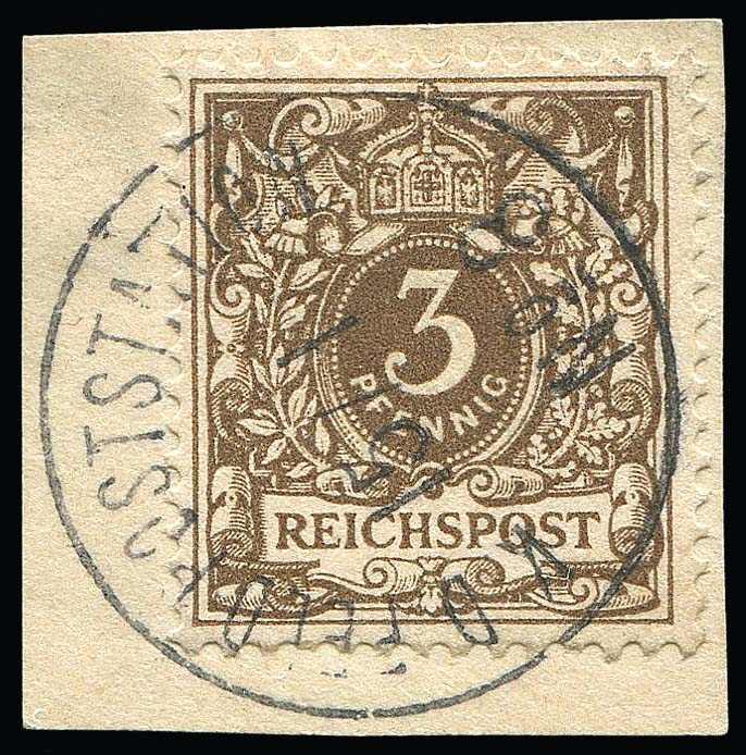 | Zusatzinformationen und Suchstichworte: | 32. Schlegel Auktionshaus Auktion 15. - 19. Mai 2023 Los 6018 Deutsche Auslandspost China, Petschili Ausgaben 1900, 3 Pfg. dunkelockerbraun, bräunlichschwarz quarzend, Petschili-Ausgabe, entwertet "K.D. FELD-POSTSTATION No. 8. 15/1" auf Briefstück, einwandfrei, signiert Ausruf 400,00 EUR |