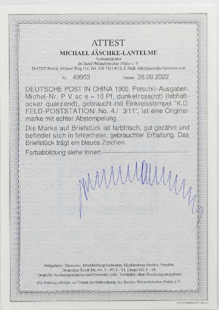 | Prüfgebiet: | Deutsche Auslandspostämter China Petschili-Ausgaben |