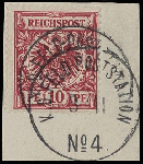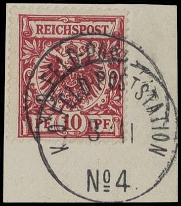 | Zusatzinformationen und Suchstichworte: | 32. Schlegel Auktionshaus Auktion 15. - 19. Mai 2023 Los 6020 Deutsche Auslandspost China, Petschili Ausgaben 1900, 10 Pfg. Krone/Adler dunkelrosarot ohne Aufdruck während der Boxer-Unruhen im Petschili-Gebiet verwendet, auf Briefstück mit Stempel "K.D. FELDPOSTSTATION / No. 4. 3/11", farbfrisch und gut gezähnt, einwandfrei Ausruf 1.600,00 EUR |