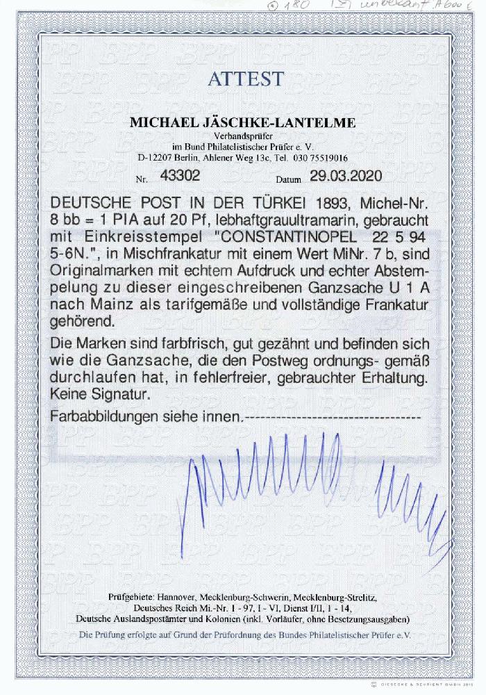 | Prüfgebiet: | Deutsche Auslandspostämter Türkei |