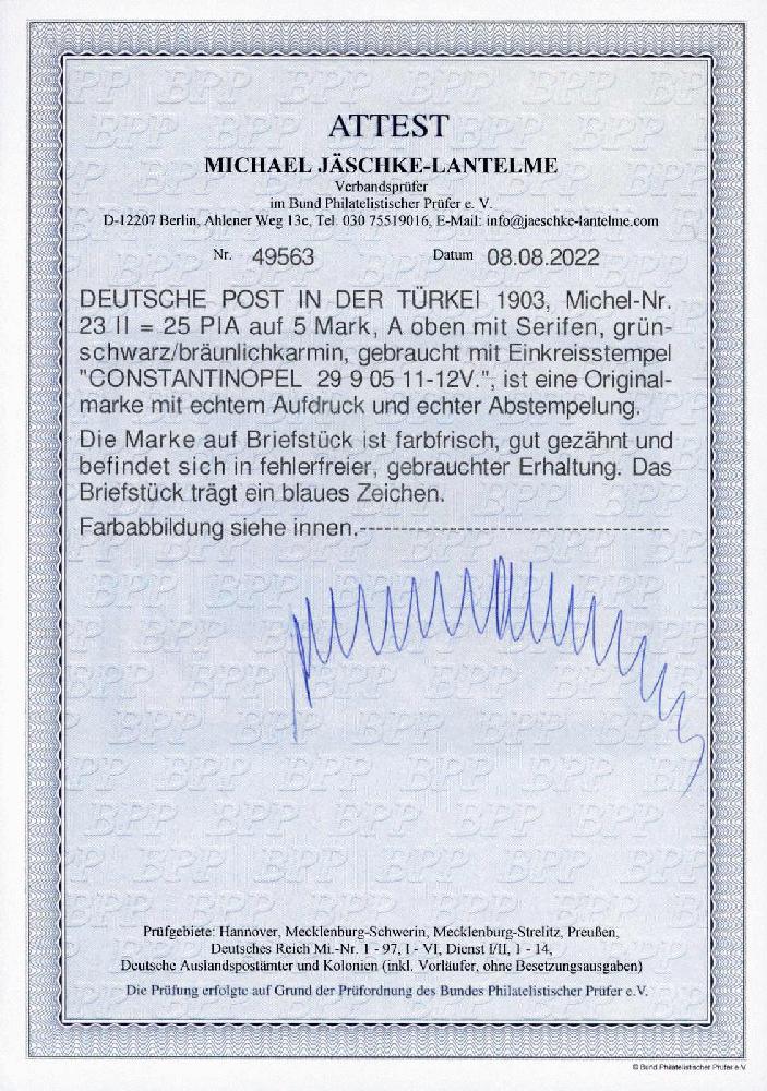 | Prüfgebiet: | Deutsche Auslandspostämter Türkei |