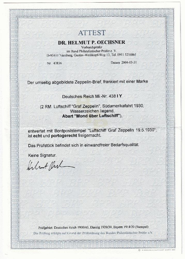 | Prüfgebiet: | Deutsches Reich Zeppelinpost (Belege) |