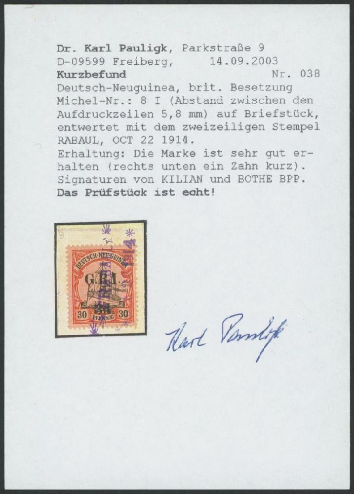 | Prüfgebiet: | Deutsche Kolonien Deutsch-Neuguinea Britische Besetzung |