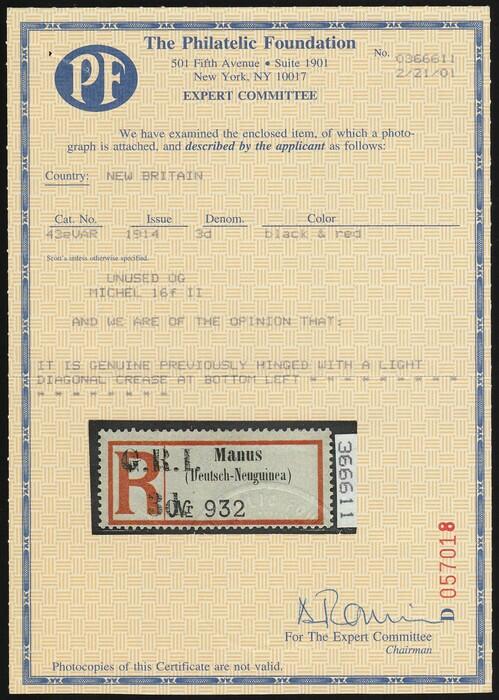 | Prüfgebiet: | Deutsche Kolonien Deutsch-Neuguinea Britische Besetzung |