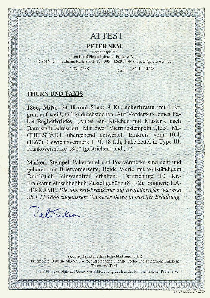 | Prüfgebiet: | Altdeutschland Thurn und Taxis |