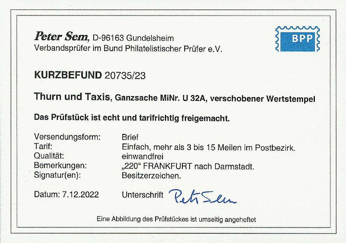 | Prüfgebiet: | Altdeutschland Thurn und Taxis |
